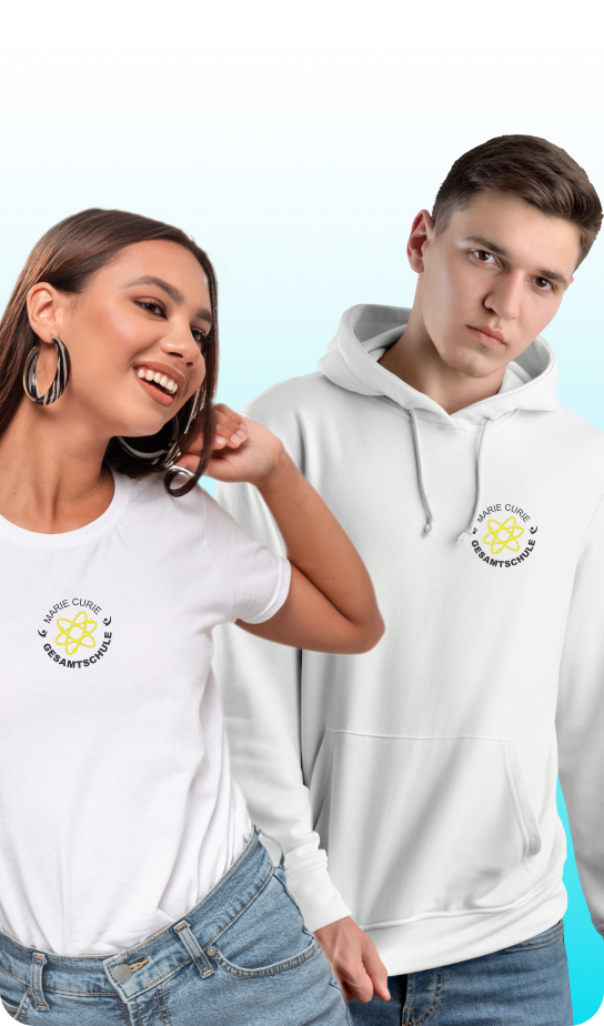 Gestalte individuelles Merch für deine Schule und wir kümmern uns um den Rest. Shop-Erstellung, Grafikservice & Hosting 100% kostenfrei und unverbindlich!