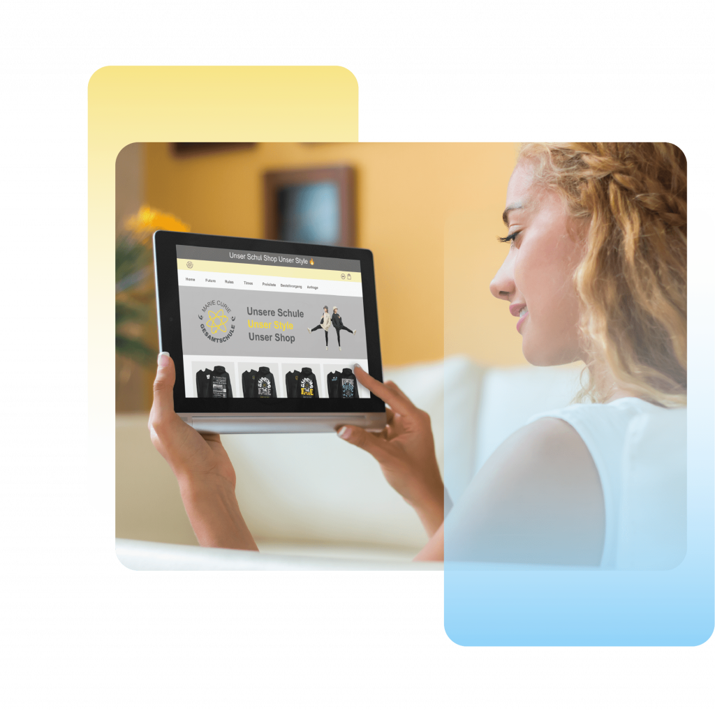 Dein Online-Shop, ausgestattet mit dem Logo der Schule, ist optimiert für das Einkaufen über Desktop PC’s oder über Smartphones. Wir kümmern uns zudem um eine sicheren Bezahlvorgang, Datenschutz und Hosting. Das einzige was euch an Arbeit bleibt, ist den Link in der Schule zu teilen.
