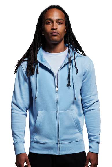 Zip Hoodie mit figurbetonter Passform und weichem, angerautem Finish. Die Kapuze im Waffelmuster verleiht dem Hoodie eine besondere Note, während hochglänzende, nickelfreie Ösen, Reißverschluss und Kordelenden für ein edles Erscheinungsbild sorgen. Der Polyester ist farblich passend eingefärbt und die Kordel in Schlauchform ist verdeckt. Der versteckte Reißverschluss und das gebürstete Fleece-Innenfutter bieten hohen Tragekomfort, während doppelte Nähte für eine hochwertige Verarbeitung sorgen. Die Bündchen und der Saum sind aus zweifach geripptem Stoff gefertigt und die Kängurutasche bietet praktischen Stauraum.